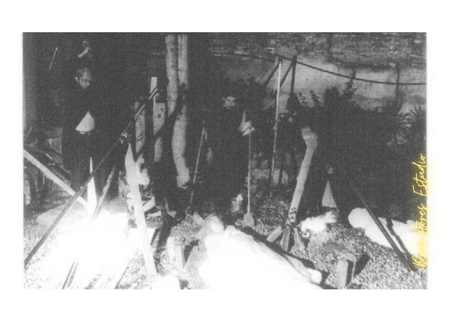 Sinopsis: En esta obra, un sepulturero, hombre de sombras y terrones, queda atrapado en la danza macabra de sus propios sueños. En su pesadilla, las campanas de la corrupción y el poder resuenan en un festín donde los poderosos brindan con copas de champán hasta perecer.