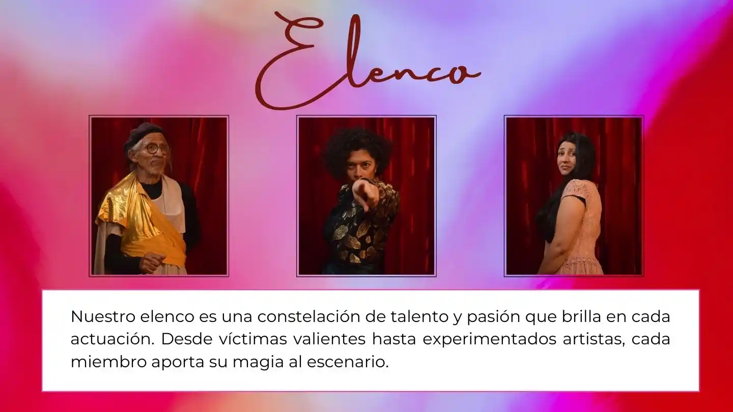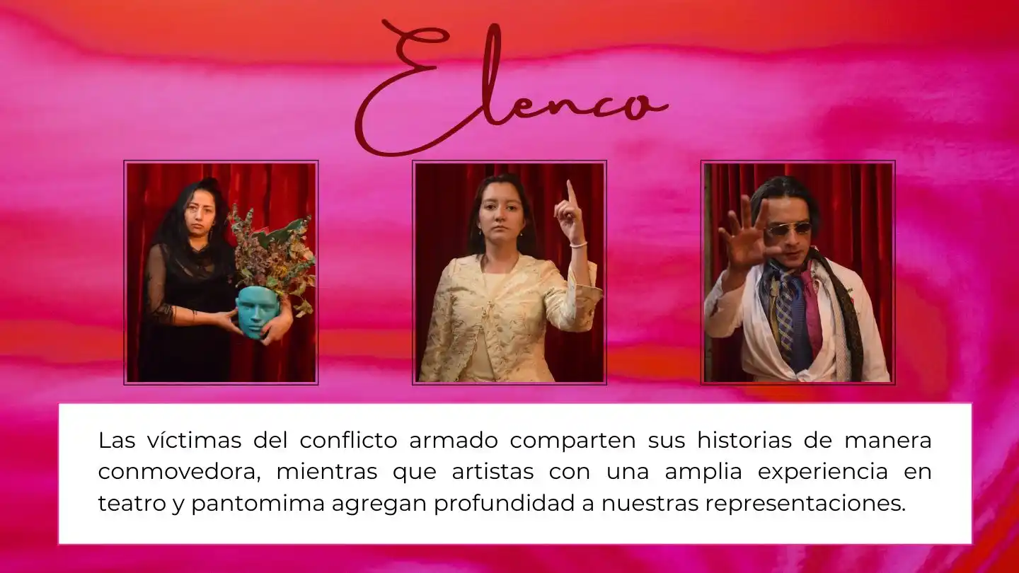 Reparto: Victoria: Laura Valencia, Florencio: Miller Pinto, Villancio: Nico Roto, Autor: Jussim Farow, Presidente: Robert Aldana, Gabriel Cortázar: Ivancho Rojas, Guardaespaldas: Camilo Cárdenas, Ronald Bustos, Gabriel Buitrago, Reportera: Jenny Segura.