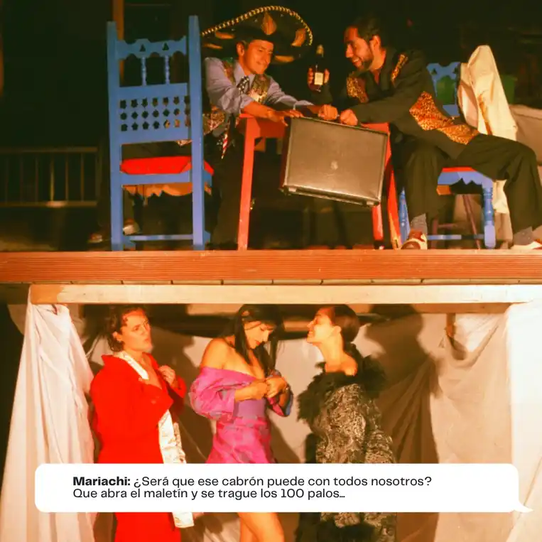 Bailarinas y secuaces: Maritza Beltrán, Jeniffer Cardozo, Faizuly Rodríguez, Giselle Barrera, Beatriz Flórez, Lina Angulo, Chulo: Jorge Achury, Chulito: Gabriel Porte, Borracho: Edilson Beltrán