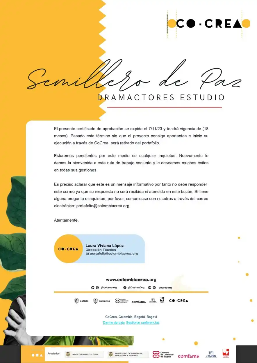 WhatsApp: +57 316 8677690 – Correo:  contacto@dramactorestudio.com – Redes sociales : @Dramactoresestudio